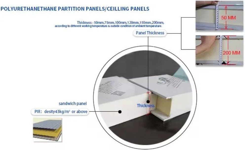 Панели холодильных установок состоят из внутренней металлической пластины, внешней металлической пластины и промежуточного полиуретанового изоляционного слоя.